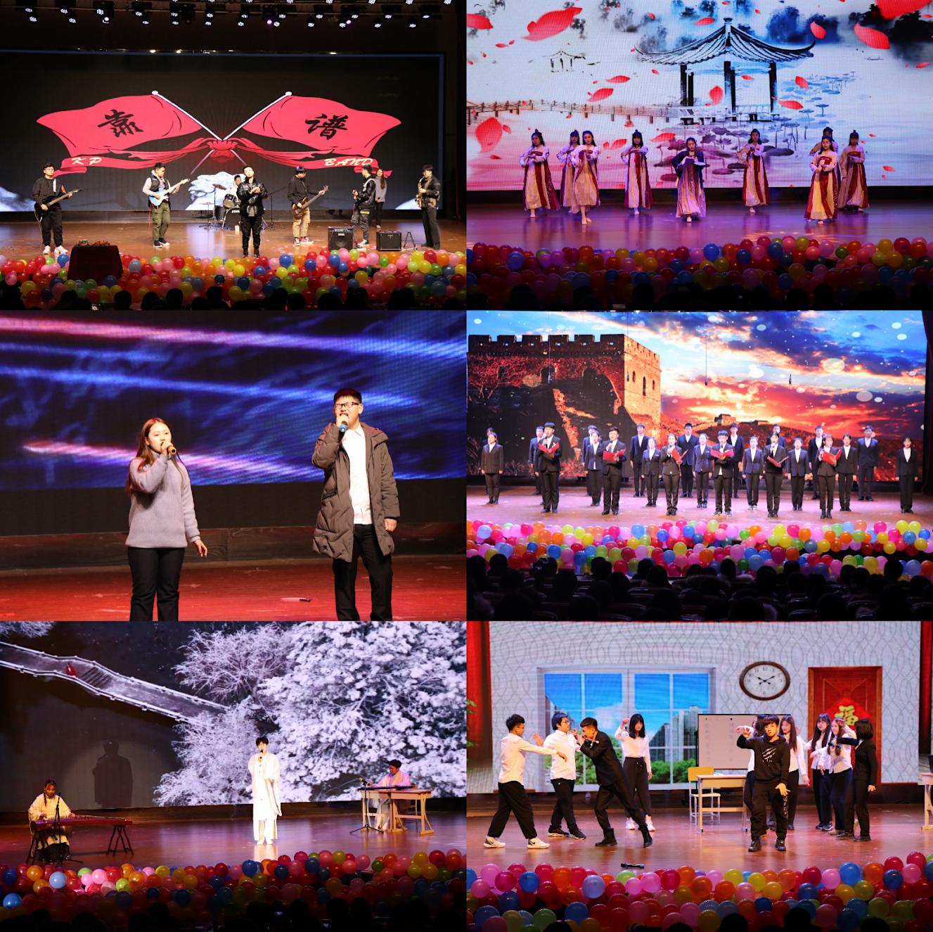 晚会节目形式多样、内容丰富,歌曲、小品、街舞、配乐朗诵、古筝演奏等十多个节目,其各有特色、异彩纷呈,为师生带来了一场精美的视听盛宴。Kp乐队演唱的《公路之歌》《蓝莲花》和《路上的石家庄人》激起了现场观众的热情;古典舞《瑶台月》水袖翩翩,青丝绵绵;诗朗诵《我和我的祖国》讲述了中国共产党70年奋斗历程,功勋卓著的科学家、航天英雄、飞行员和女排队员、普普通通的工程师、扶贫队员、出租车司机……每一个人都在自己的岗位上贡献着自己的力量;歌曲《雪落下的声音》音韵优美,展示了中华传统文化的魅力,以古风与现代音乐的融合给观众带来视觉的冲击;小品《传销之洗脑风波》很好的反映了社会的不良现象,折射出当代青年对于网络诈骗等一系列犯罪的警惕,也同样提醒同学们知法、懂法、信法。