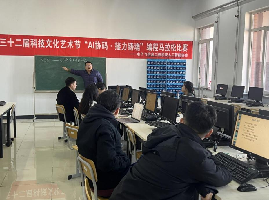 提高教师的教学能力、锤炼教师教学能力、优化课程设计,在学校教师大赛的带领下,电子与信息工程学院人工智能专业教研室于 2025 年 10 月 22 日至 11 月 5 日,分三场开展磨课比赛。由楚川、刘翔宇等 7 位教师围绕 “C 语言指针”“Python 类与对象” 授课,王彦超院长、刘一臻主任全程指导并点评,为青年教师成长指明方向。