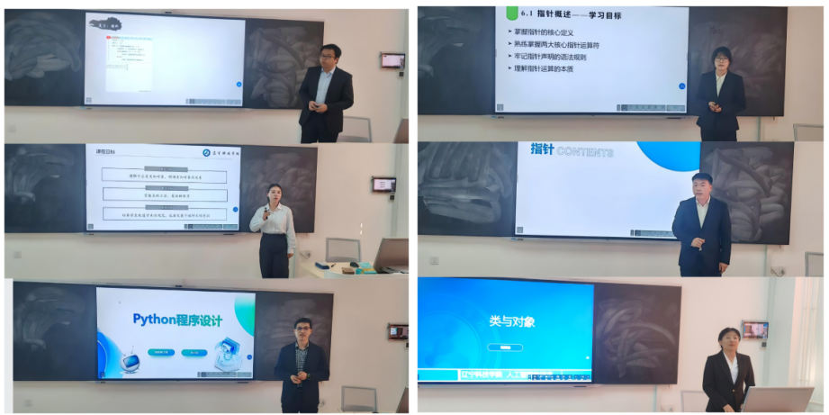 在Python程序设计赛道中,四位教师围绕面向对象编程范式,以类与对象为核心,引导学生深入掌握编程精髓。在程序设计基础赛道,两位教师则以C/C++语言为载体,聚焦指针概念的深度教学,展现了扎实的教学基本功。