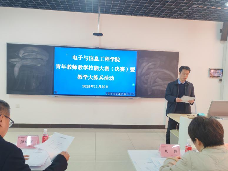 2025年11月20日,电子与信息工程学院成功举办了一场以“以赛促教,以练提质”为主题的青年教师教学技能大赛决赛。此次活动旨在进一步提升青年教师的教学能力,激发教学创新活力,为学院的高质量发展注入新动力。