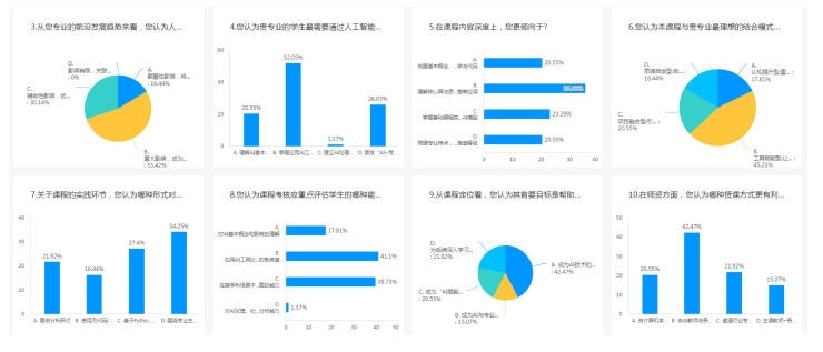 人工智能通识课不是“计算机+AI”的简单叠加,而是为不同学科提供差异化赋能。2025年9月—10月,学院联合教务处面向34个本科专业、2350名新生及全部专业负责人发放两套问卷,回收有效问卷分别达到85.6%和88.2%。